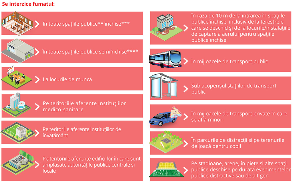 Astfel, fumatul nu va fi admis în următoarele locuri publice: