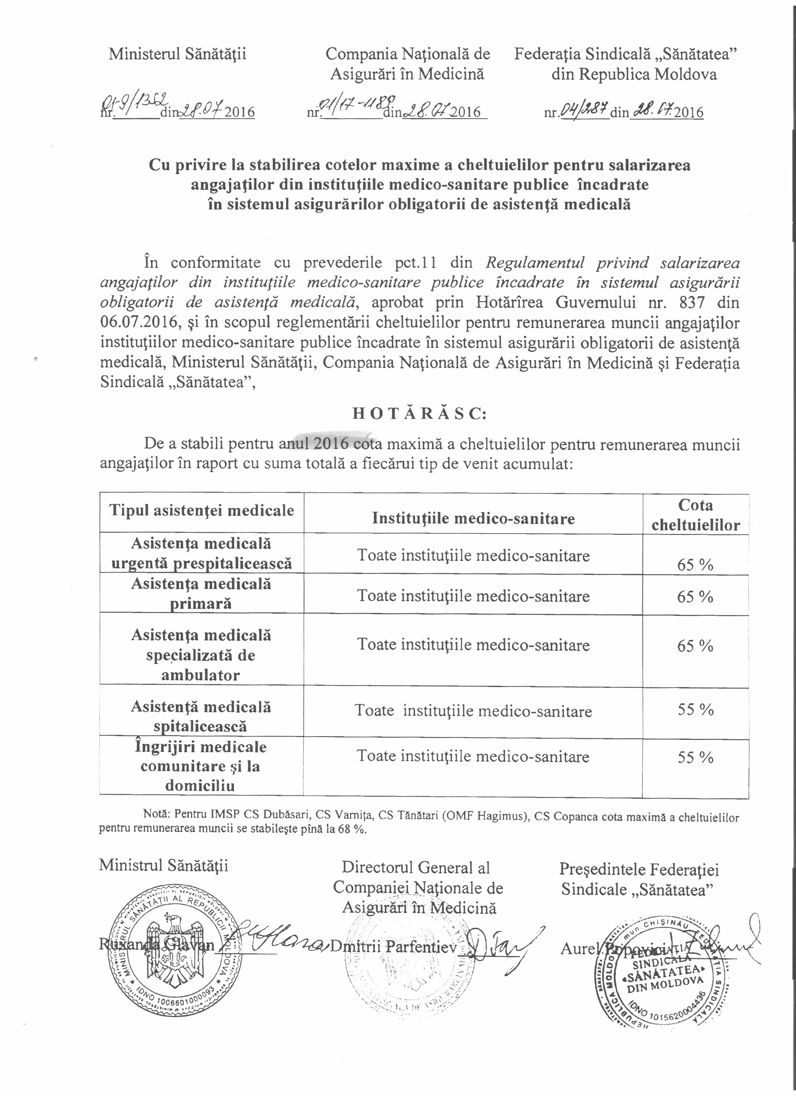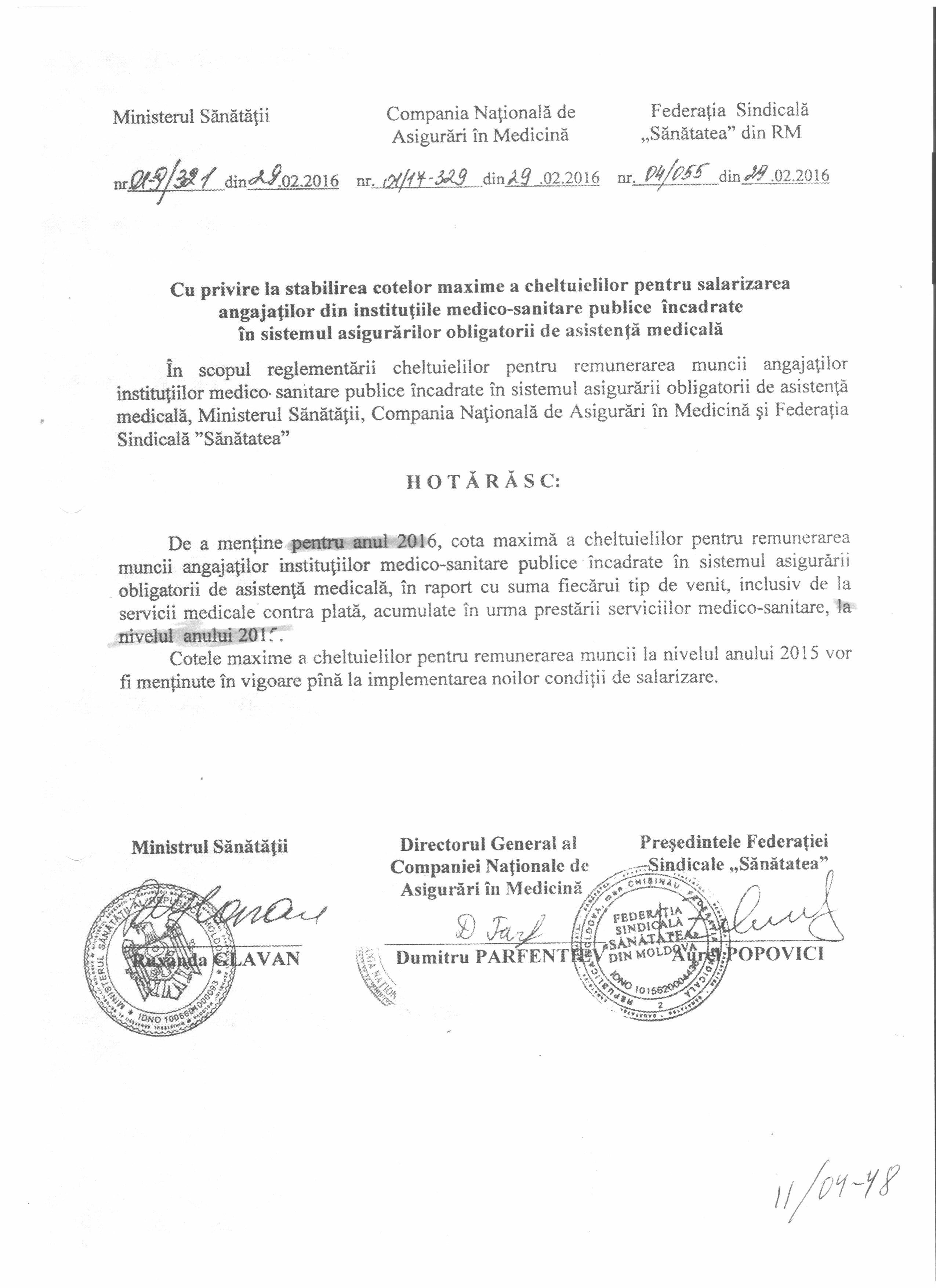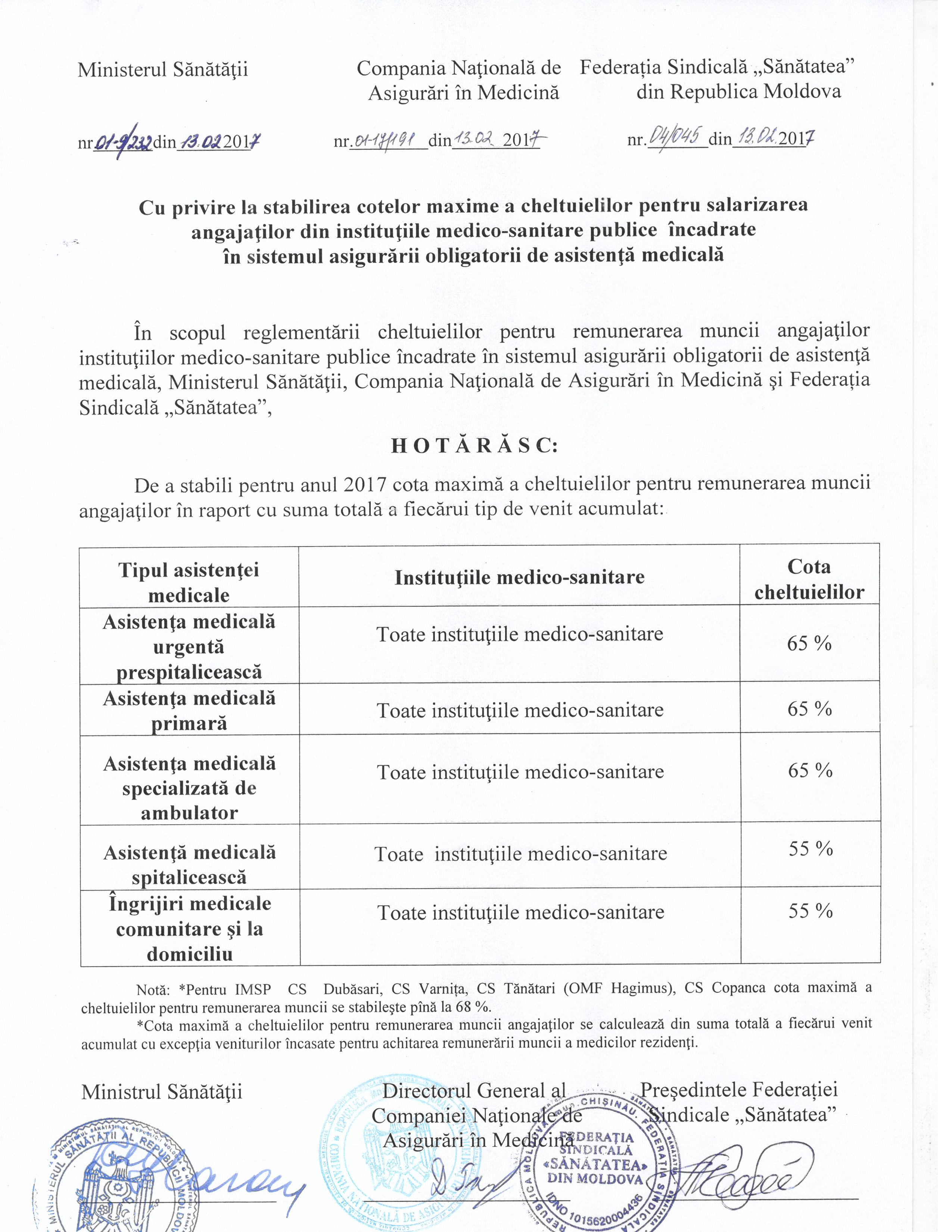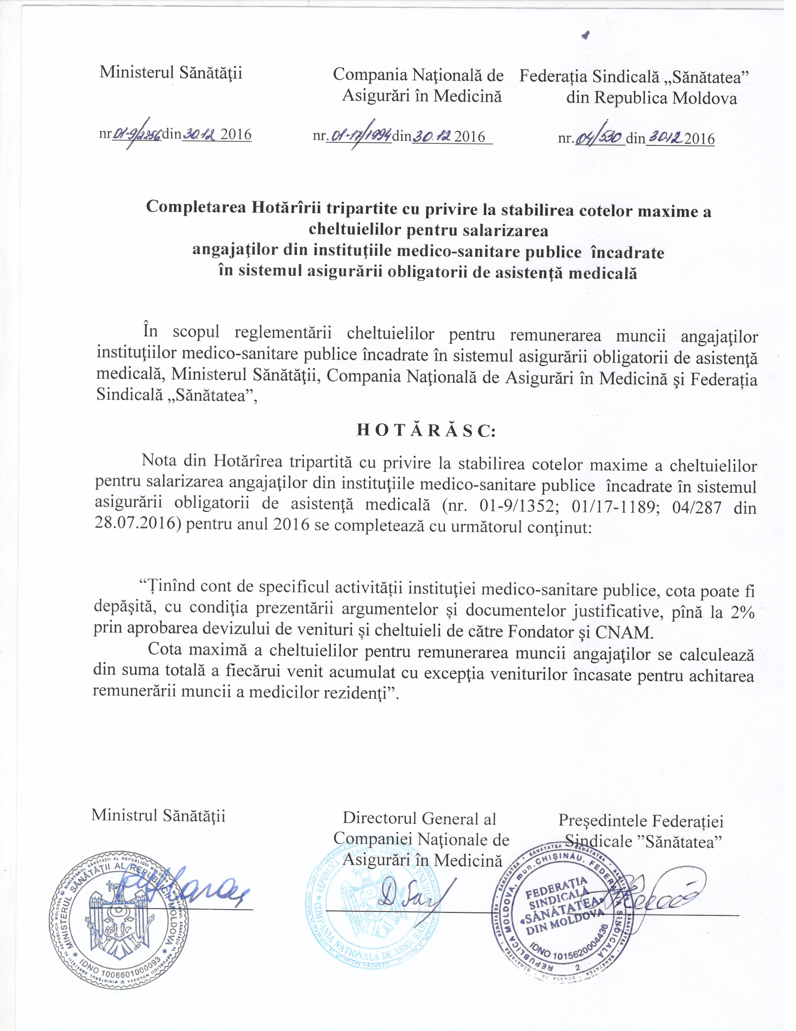 Hotărîre din 04.01.2013 cu privire la stabilirea cotelor maxime a cheltuielilor pentru salarizarea angajaţilor din instituţiile medico-sanitare publice încadrate în sistemul asigurărilor obligatorii de asistenţă medicală;